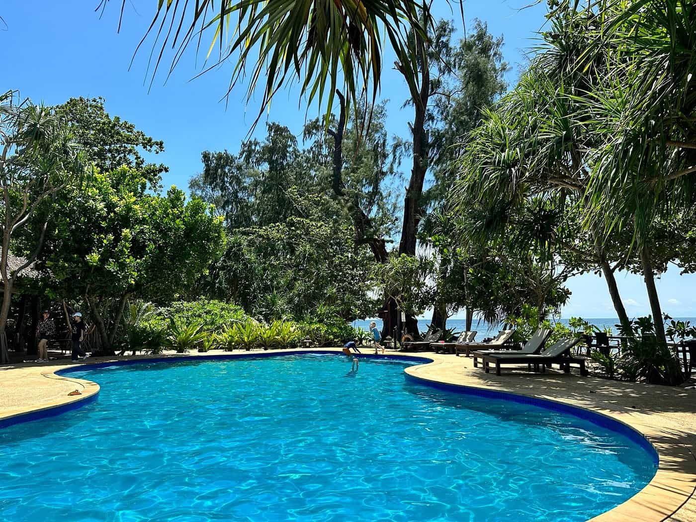 The one-bedroom layout is enhanced with an extra bed, suitable for a child or toddler, and there’s even room for a crib. The full kitchen gives parents flexibility for mealtimes, and the saltwater chlorinated pool, surrounded by dense tropical foliage, becomes the family’s private oasis.