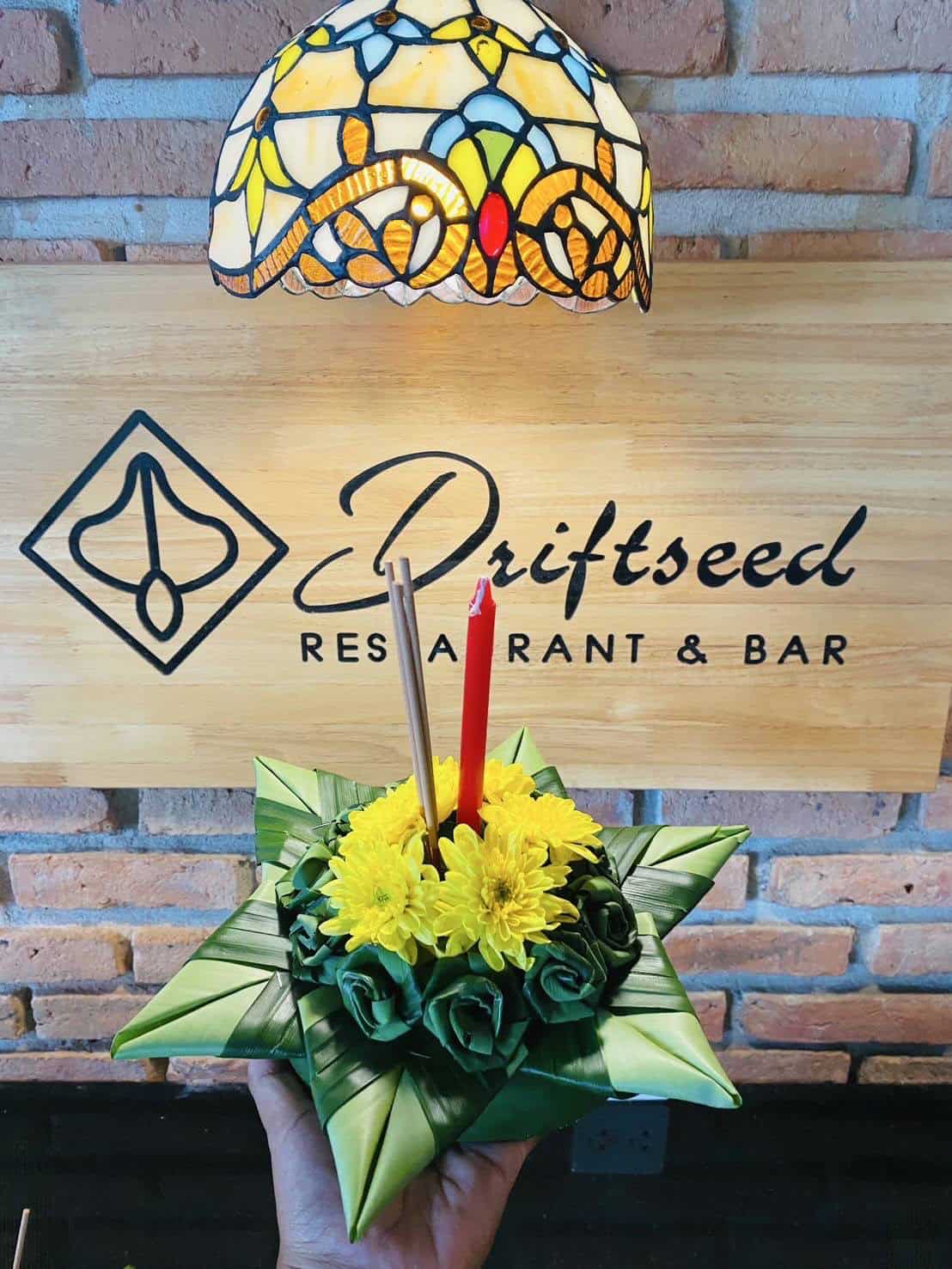 During dinner at Driftseed Restaurant, staff and guests were invited to participate in floating fully biodegradable krathongs in our restaurant pond. These krathongs were made from natural materials, ensuring no harm to the environment. It was a quiet and meaningful moment of reflection, accompanied by the soft glow of candlelight.