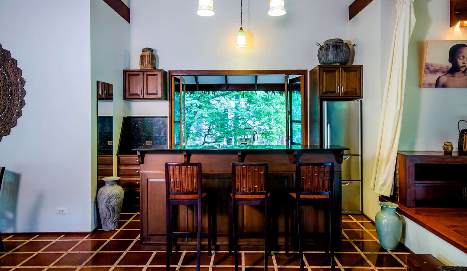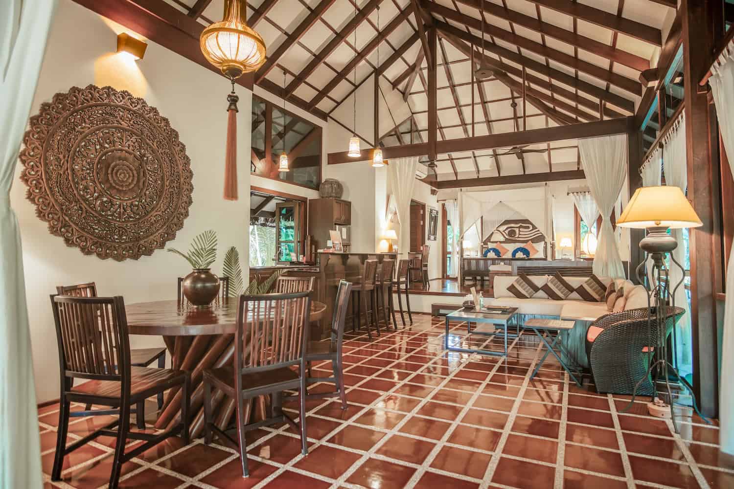 The villa is beautifully designed using lots of natural materials like wood and stone and intelligent architecture encourages plenty of natural ventilation throughout all areas of the villa which follows the eco concept of Koh Jum Beach Villas .