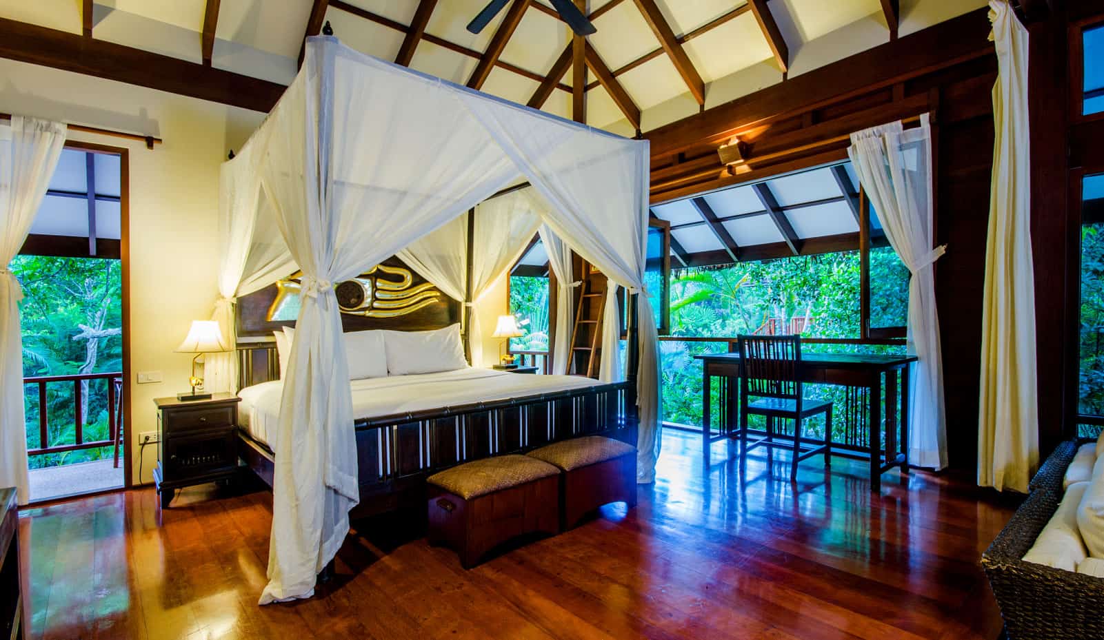 The villa has large folding doors and windows allowing a nearly 180 degree view out to the private gardens and the sea with Phi Phi as a backdrop.