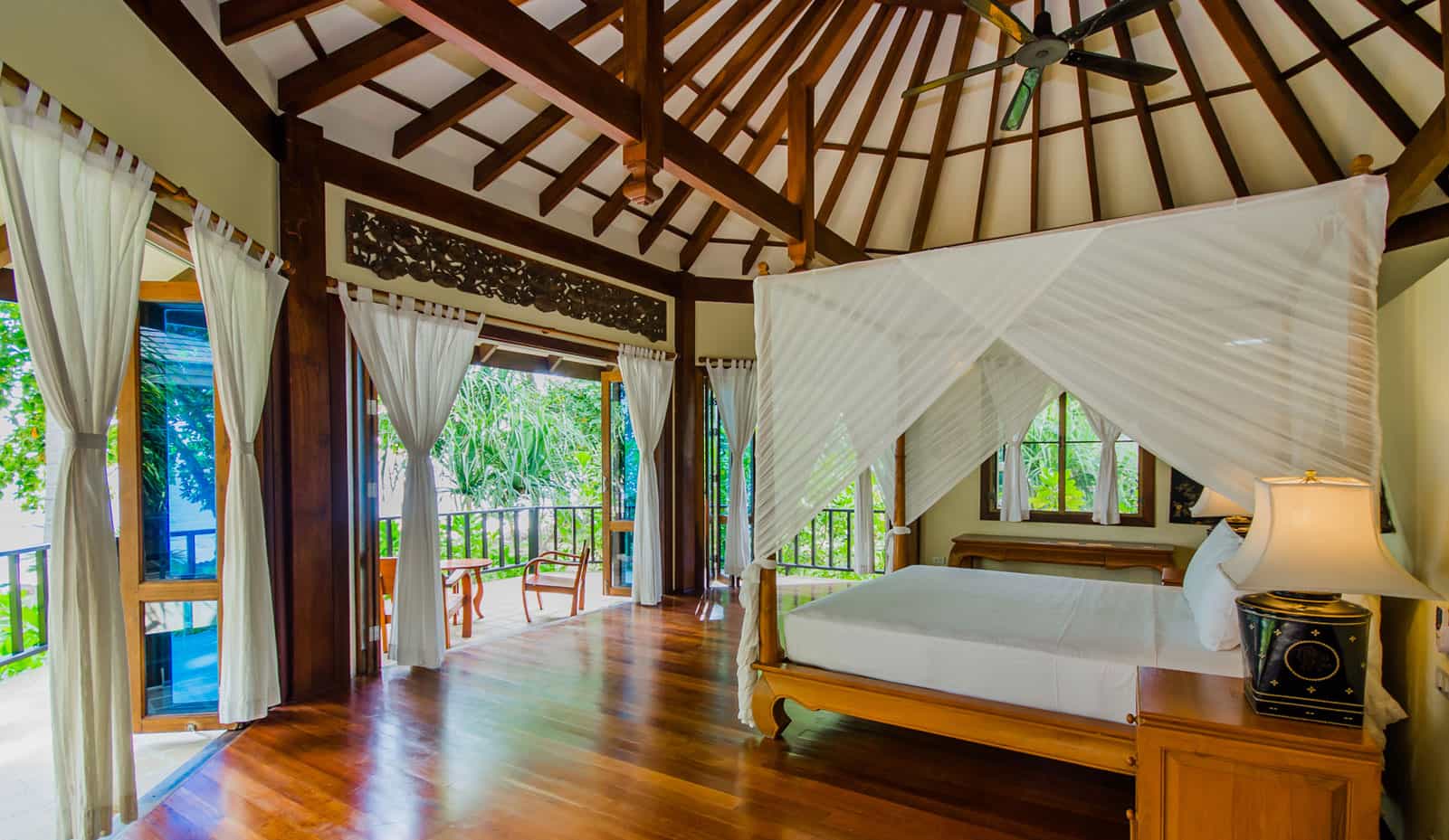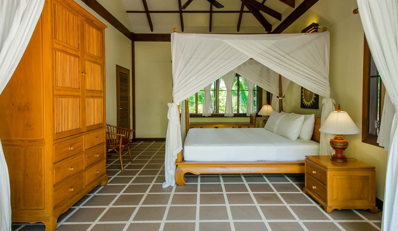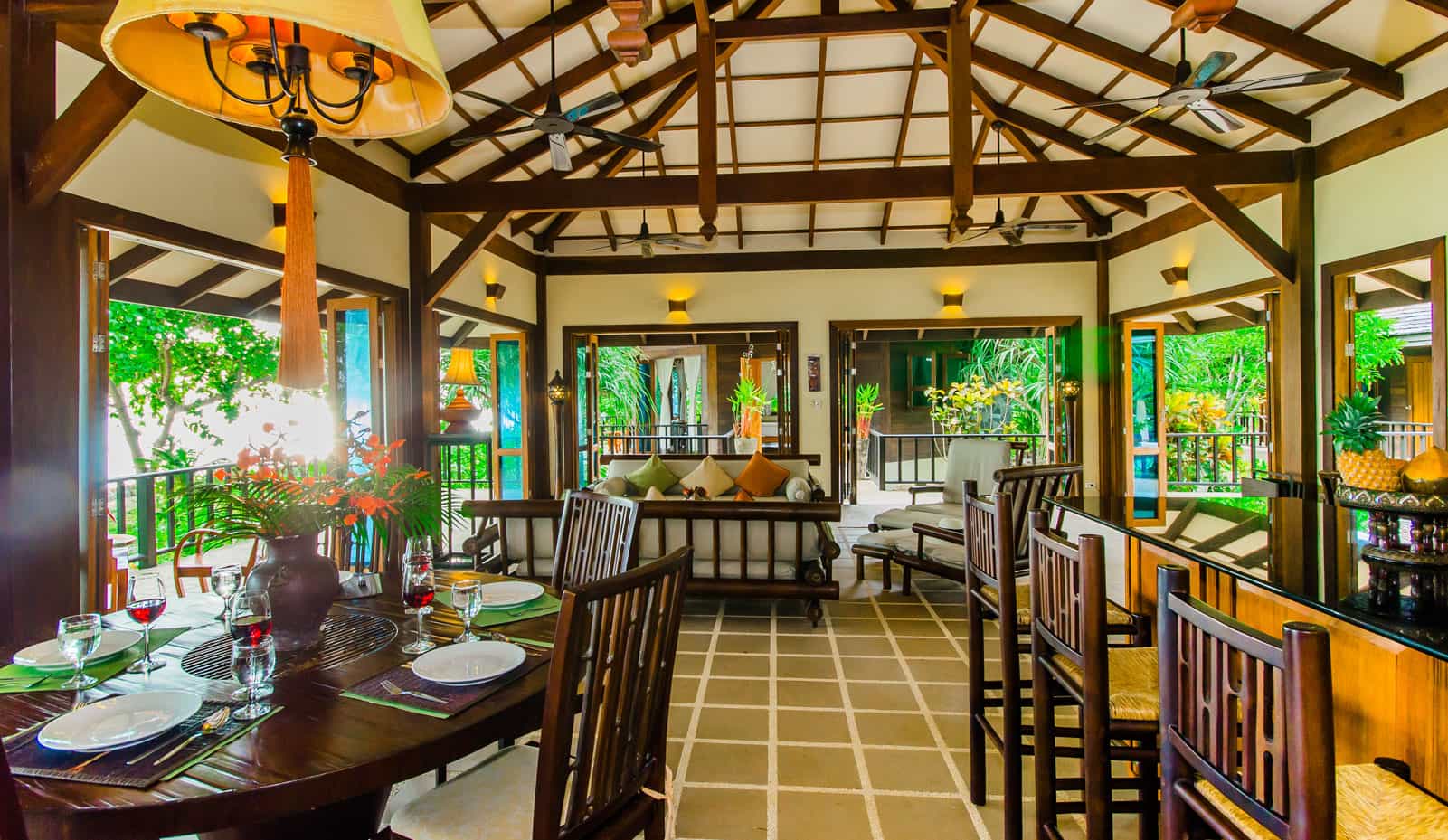The villa is beautifully designed using lots of natural materials like wood and stone and intelligent architecture encourages plenty of natural ventilation throughout all areas of the villa which follows the eco concept of Koh Jum Beach Villas. The large ceiling fans and natural breeze are a welcome feature when at leisure in your villa or at night when asleep of if preferred to sleep with the windows and doors closed each bedroom has air-conditioning which makes sleeping more comfortable for those seeking a little cooling at night.